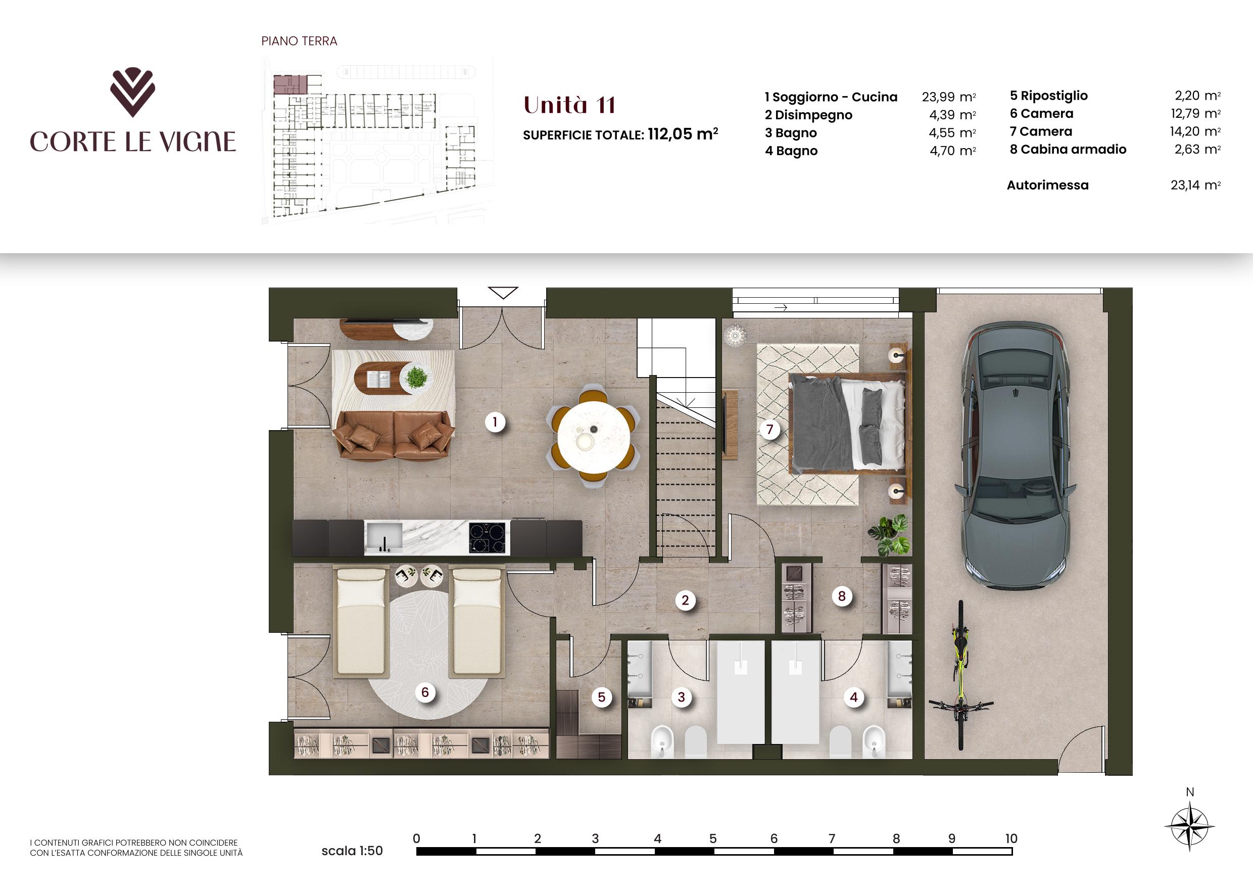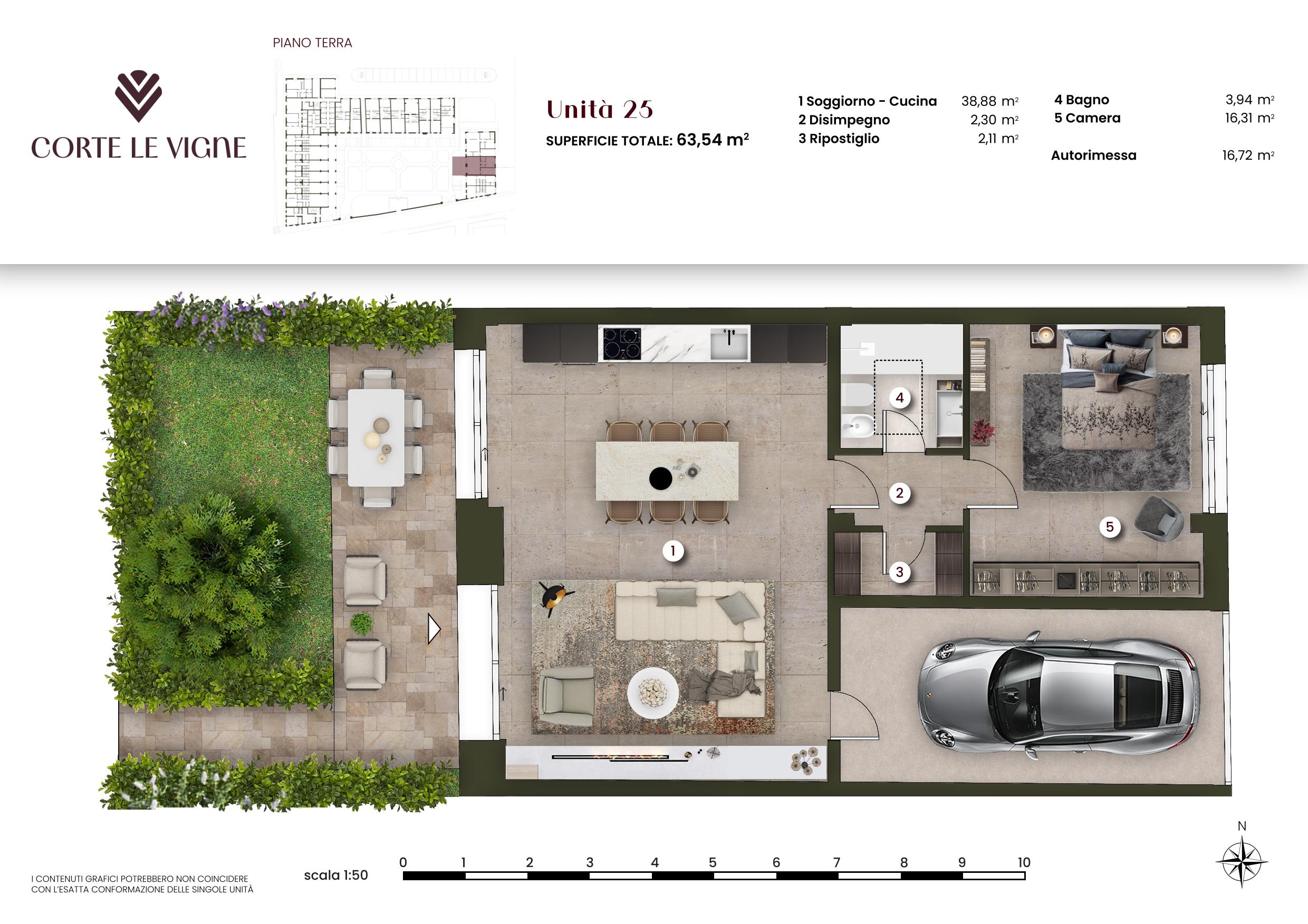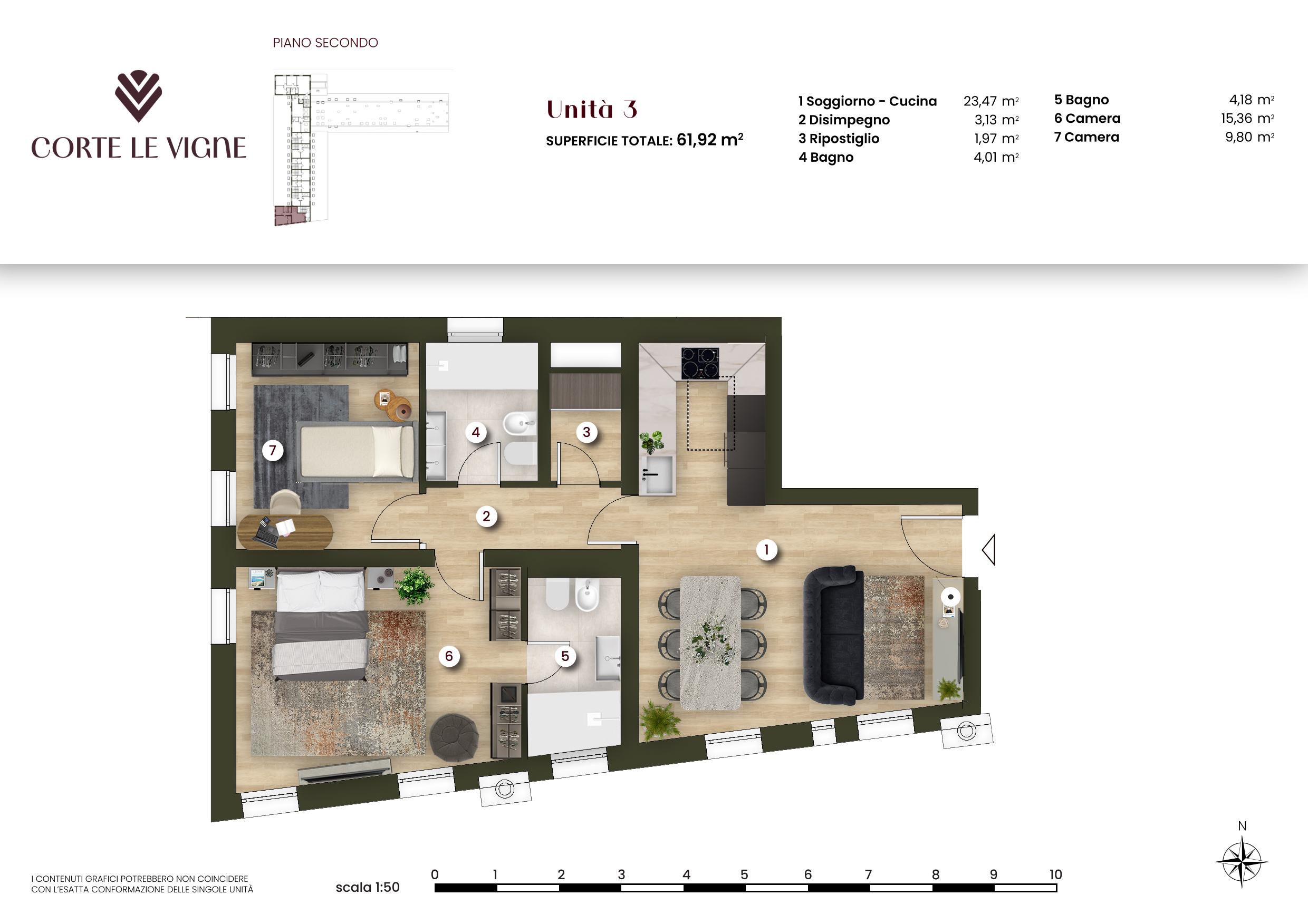 Il testo, sintetico ma ricco di informazioni, accompagna il lettore alla scoperta dei punti di forza del progetto: posizione strategica, dettagli architettonici e soluzioni abitative pensate per il massimo comfort. Il risultato è uno strumento di presentazione raffinato e intuitivo, che comunica l’eccellenza di Corte Le Vigne con chiarezza e impatto visivo.