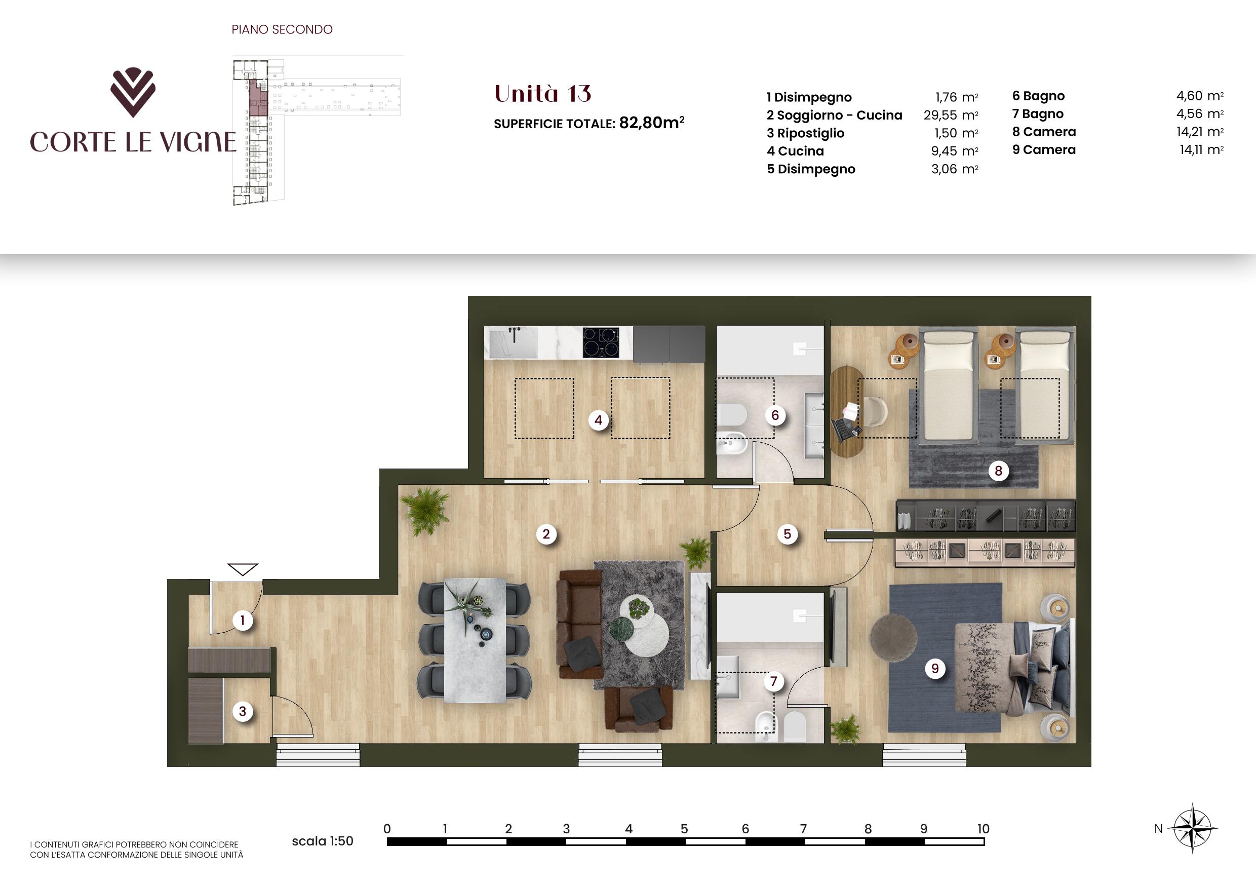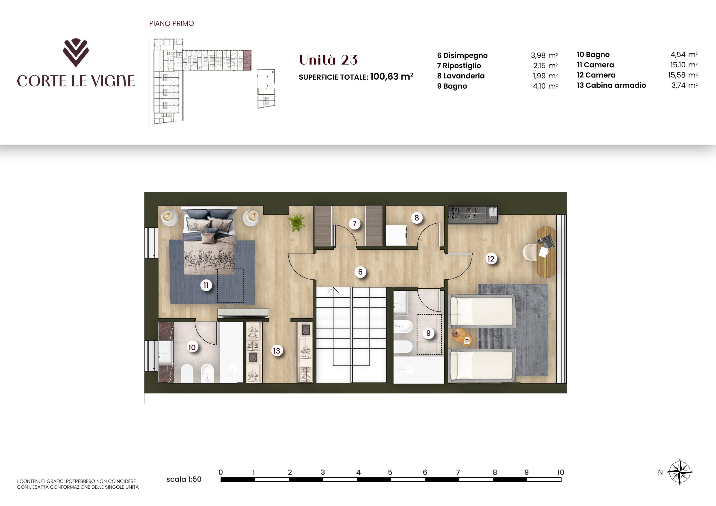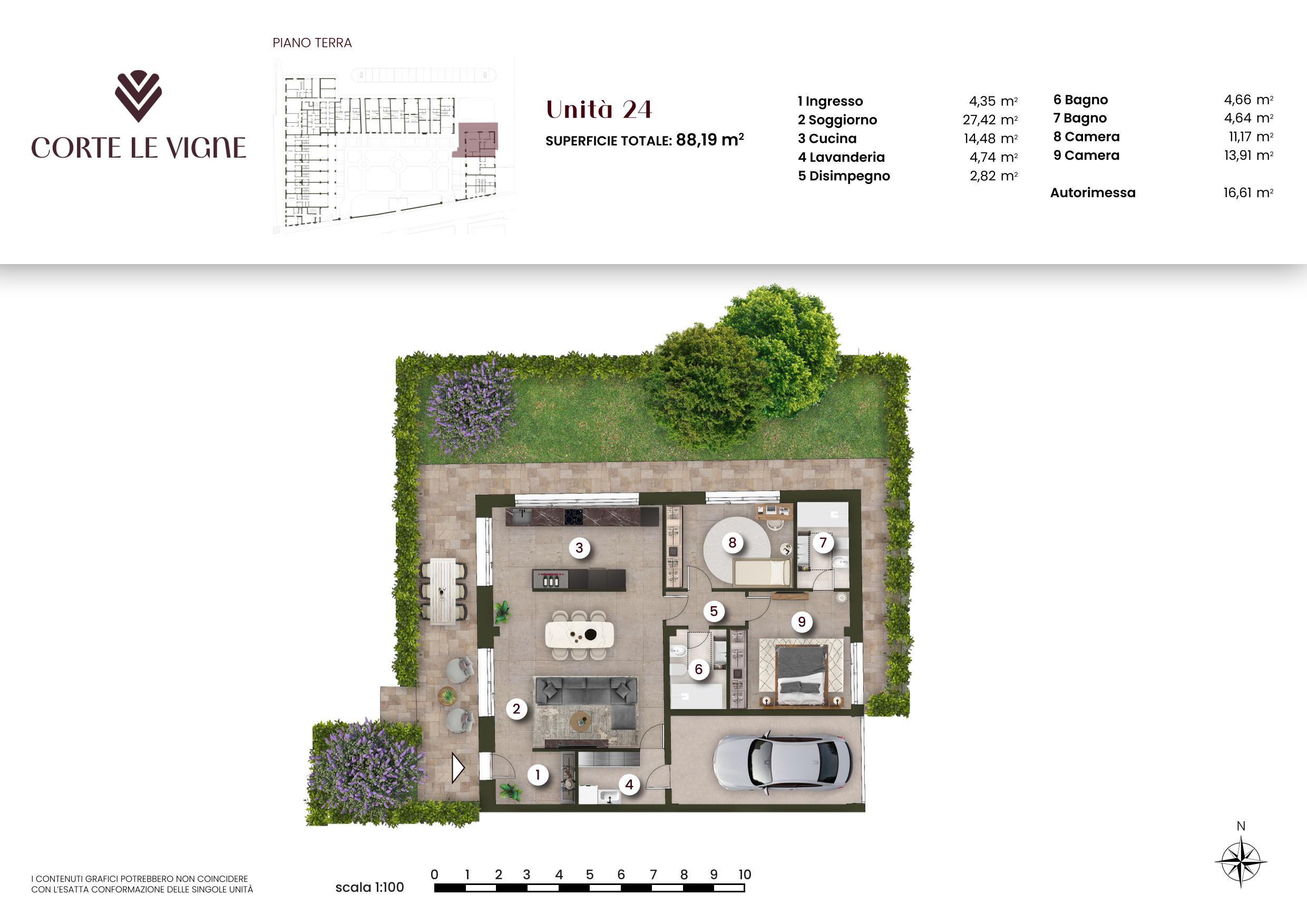 Il testo, sintetico ma ricco di informazioni, accompagna il lettore alla scoperta dei punti di forza del progetto: posizione strategica, dettagli architettonici e soluzioni abitative pensate per il massimo comfort. Il risultato è uno strumento di presentazione raffinato e intuitivo, che comunica l’eccellenza di Corte Le Vigne con chiarezza e impatto visivo.