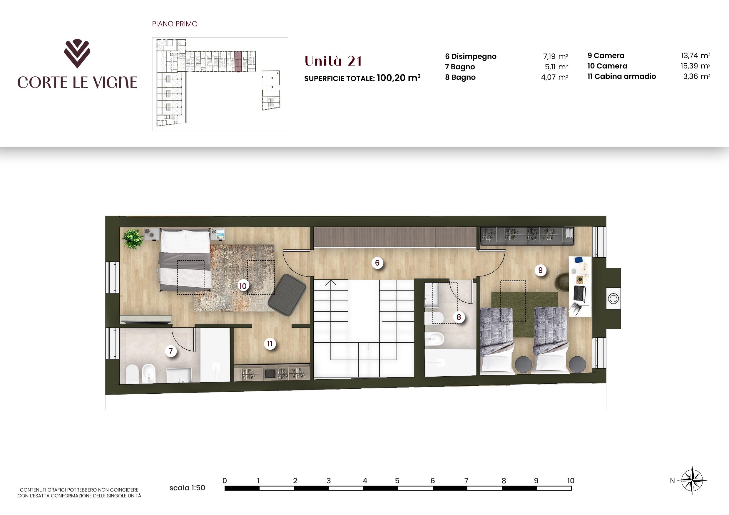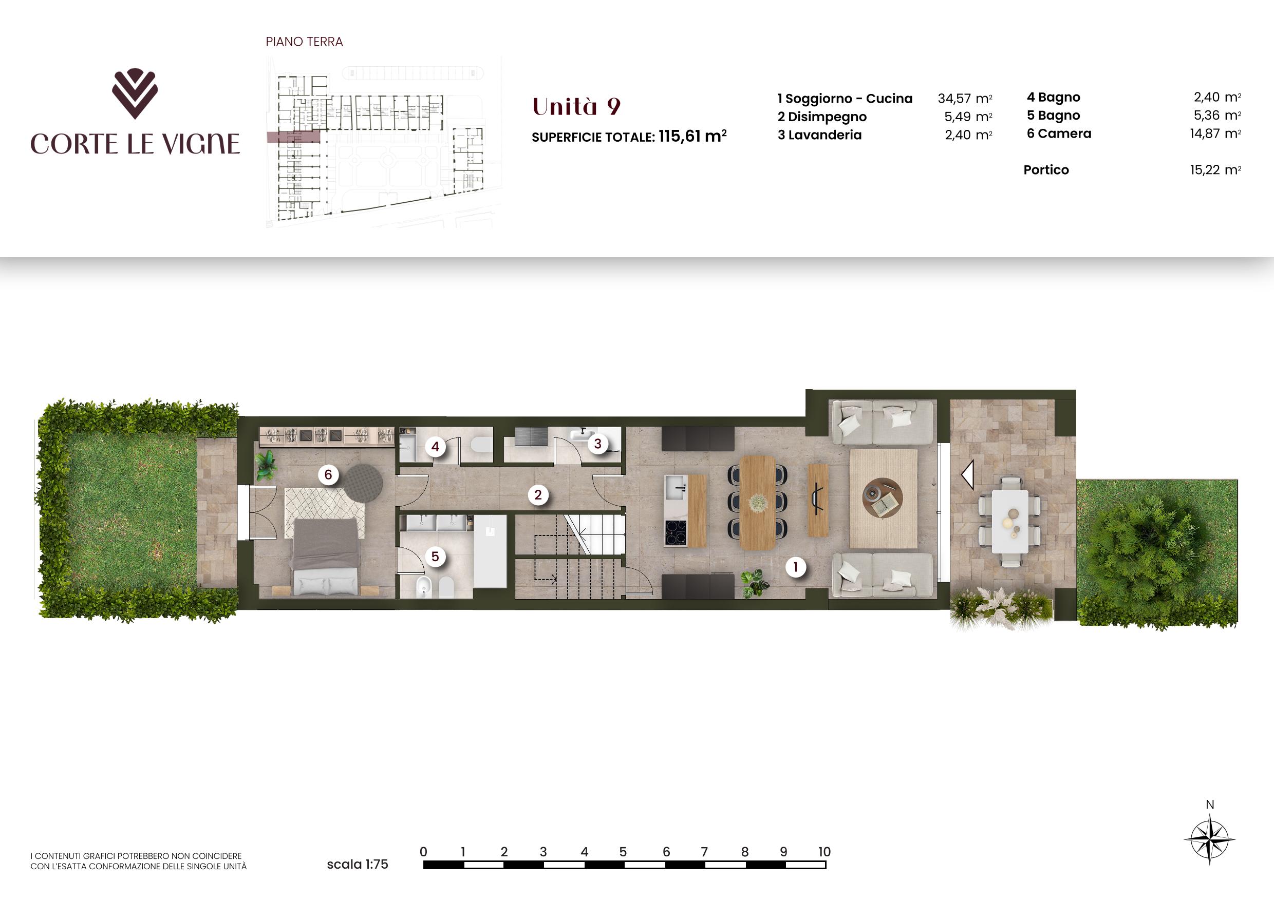 Corte Le Vigne è il risultato della ristrutturazione di un edificio storico che vanta oltre 200 anni di storia. La struttura originale, caratterizzata da un fascino rurale, è stata valorizzata e integrata con soluzioni moderne che rispondono agli standard più alti in termini di efficienza energetica e comfort abitativo. Il progetto conserva gli elementi architettonici originali, come le facciate in mattoni facciavista, ma arricchisce l’immobile con impianti avanzati e spazi pensati per il benessere dei residenti, tra cui ampi giardini e una palestra.
