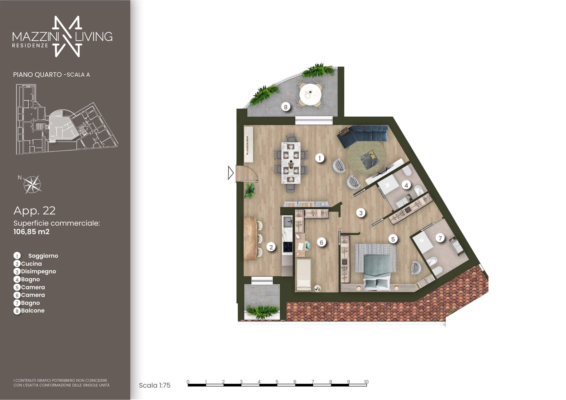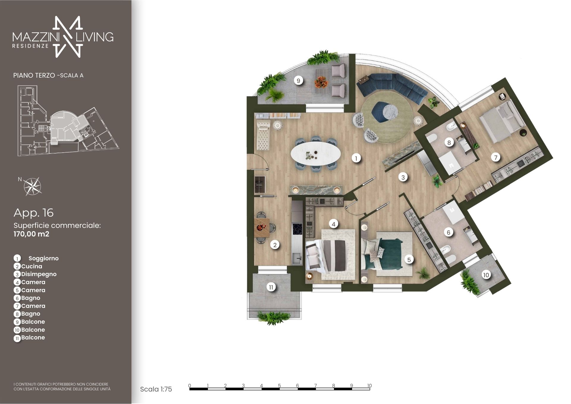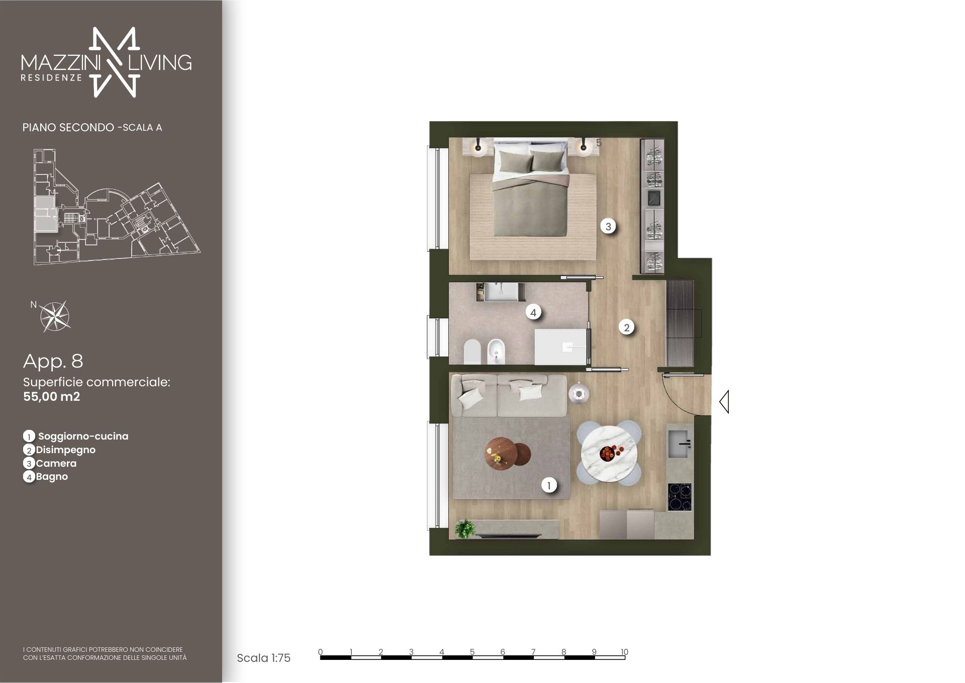 Il testo descrittivo è conciso ma informativo, guidando il lettore attraverso i punti di forza del progetto: la posizione, i dettagli architettonici e le soluzioni abitative. La brochure è stata progettata per essere un utile strumento di presentazione, facile da consultare e capace di trasmettere l’eccellenza di Mazzini Living in modo chiaro e accattivante.