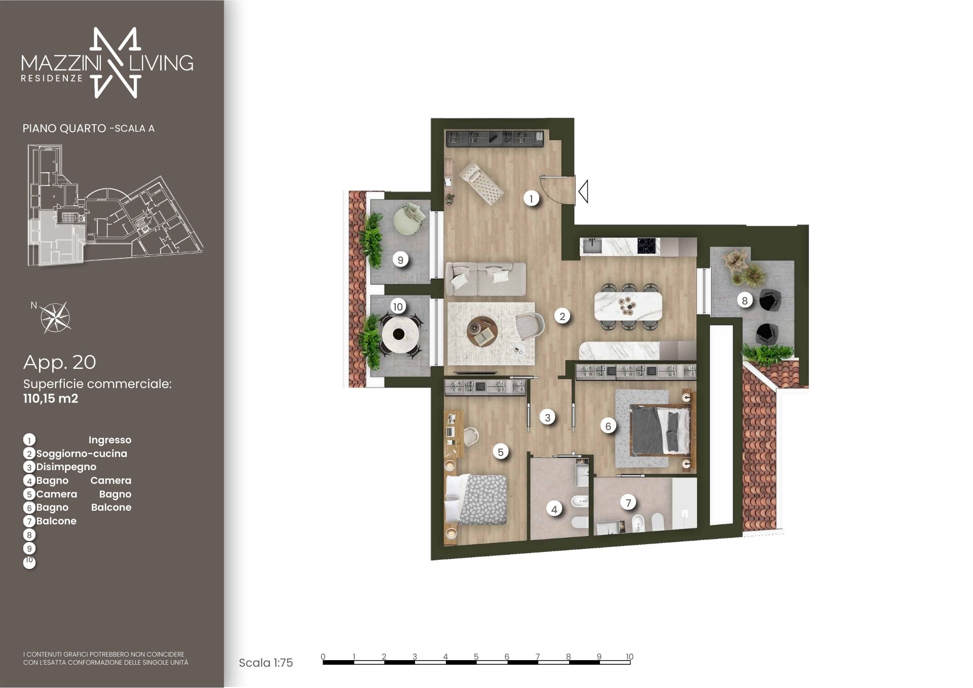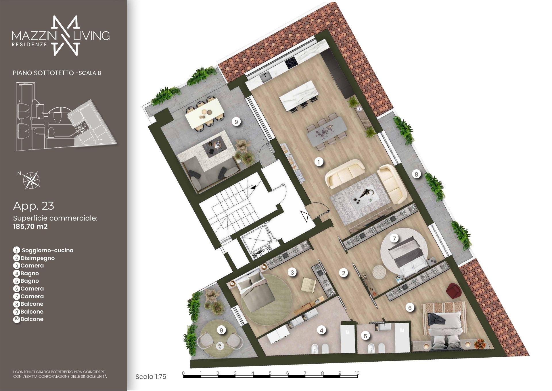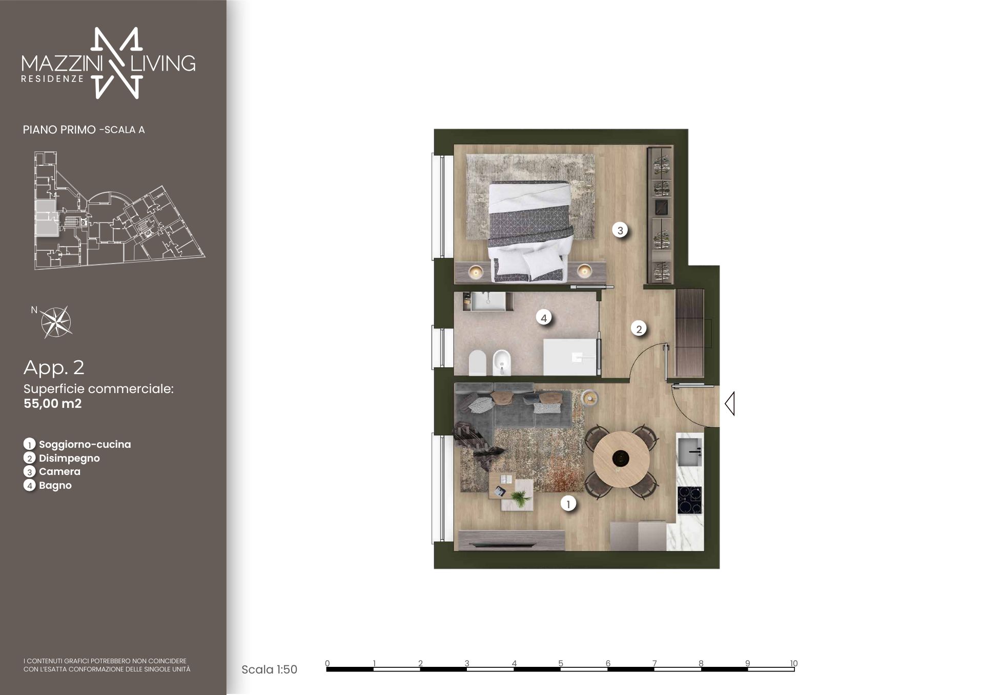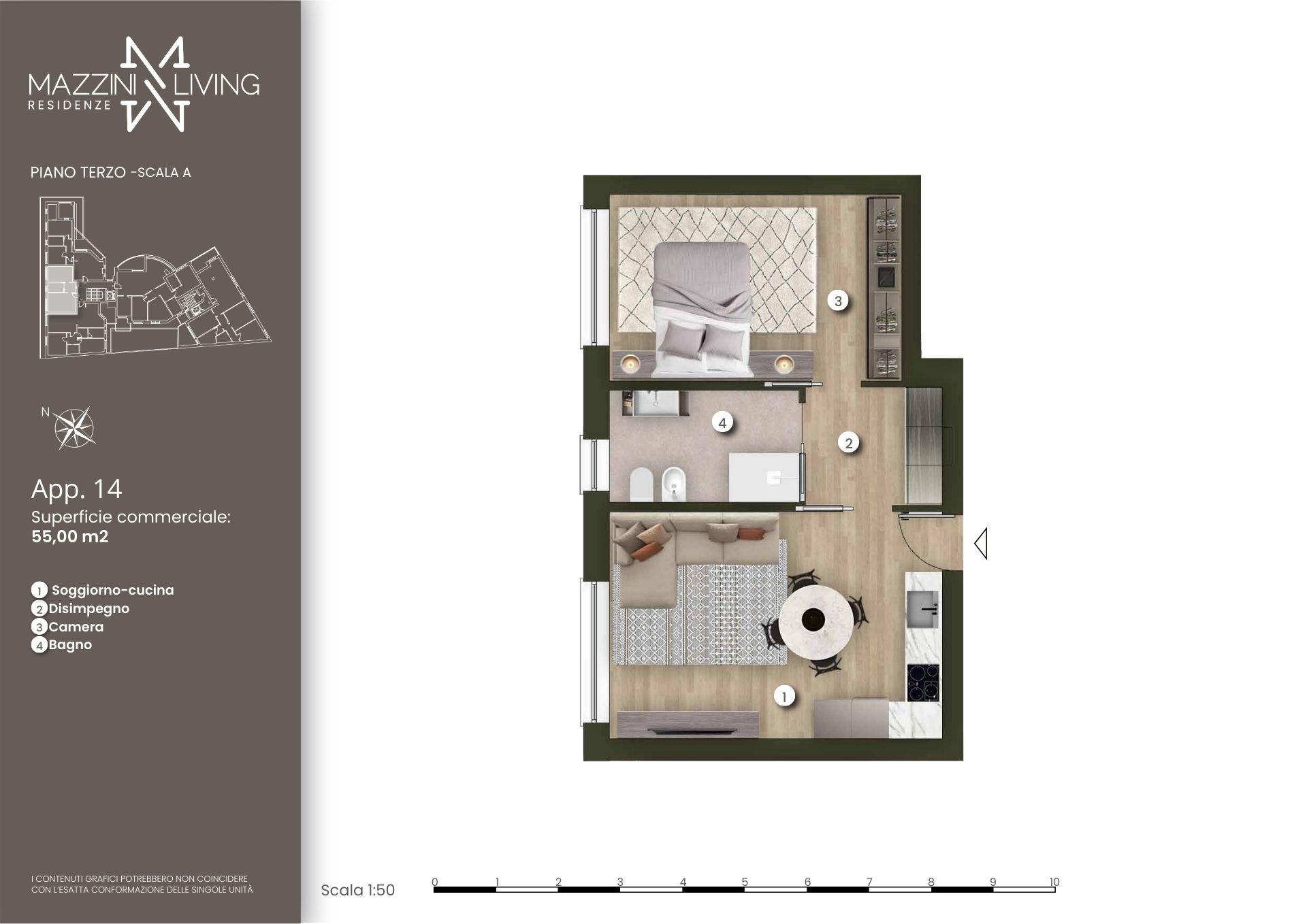 Il testo descrittivo è conciso ma informativo, guidando il lettore attraverso i punti di forza del progetto: la posizione, i dettagli architettonici e le soluzioni abitative. La brochure è stata progettata per essere un utile strumento di presentazione, facile da consultare e capace di trasmettere l’eccellenza di Mazzini Living in modo chiaro e accattivante.