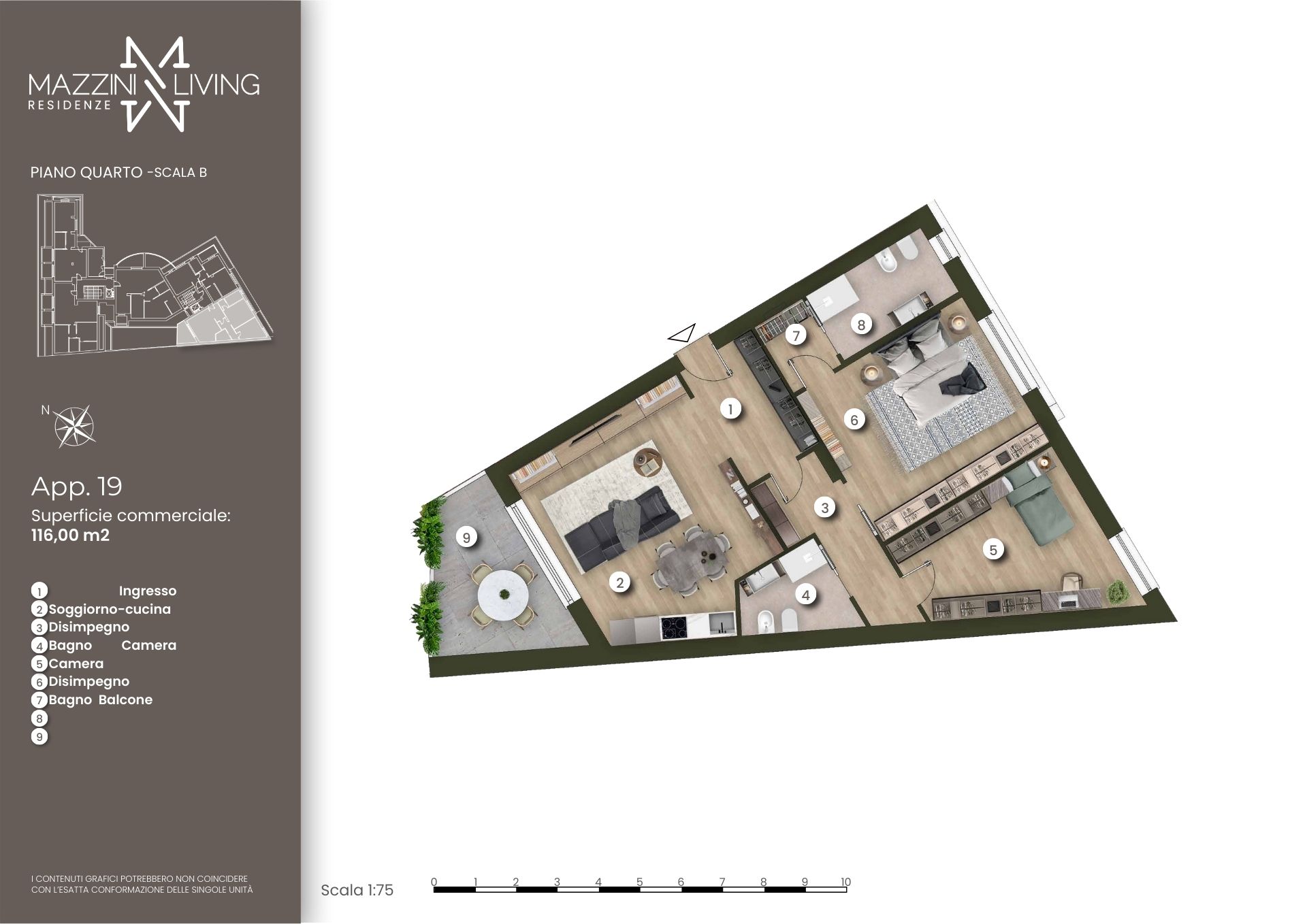 L’intervento prevede la realizzazione di 19 unità abitative moderne e funzionali, di cui 4 mansarde e 4 negozi al piano terra, pensati per soddisfare le esigenze di famiglie e professionisti. Le residenze sono caratterizzate da ambienti luminosi, ben distribuiti e dotati delle più moderne tecnologie per il comfort abitativo e l’efficienza energetica.