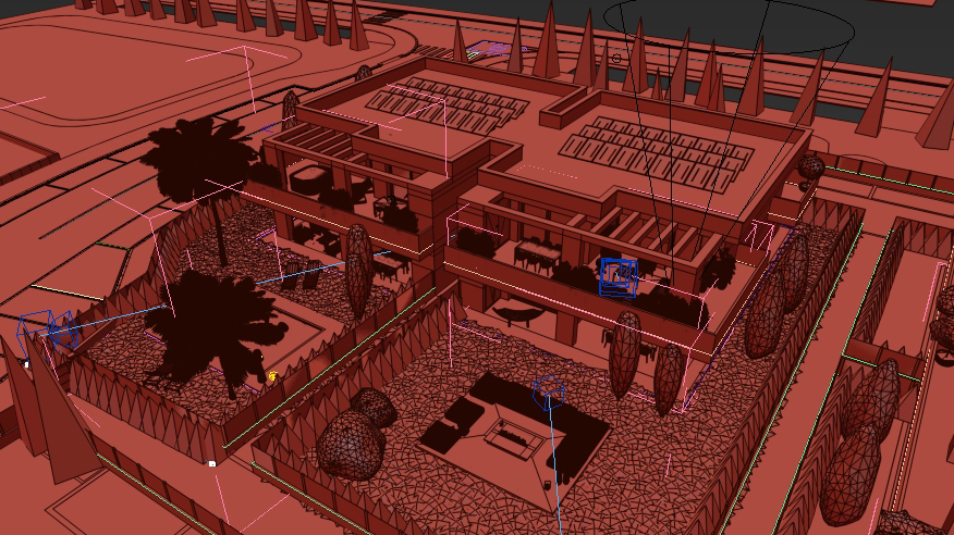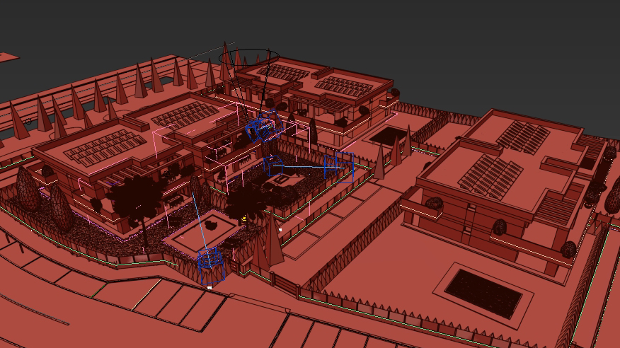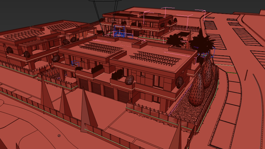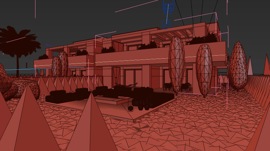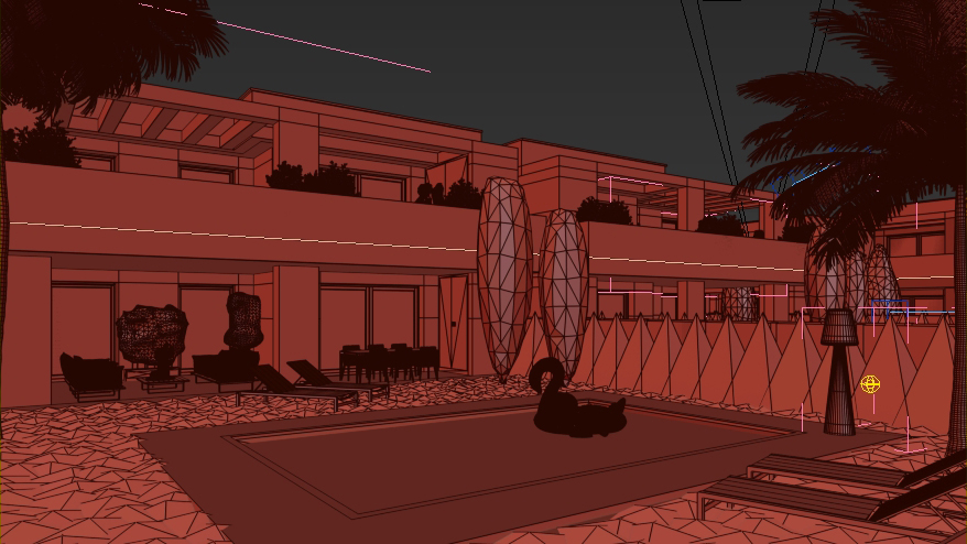 1. In prima fase, vengono creati i modelli 3D degli edifici e degli ambienti interni, partendo dalla modellazione 3D accurata della struttura architettonica in un software come 3ds Max, inserendo degli asset 3D di alta qualità di arredi, oggetti, vegetazione, materiali con texture HD,