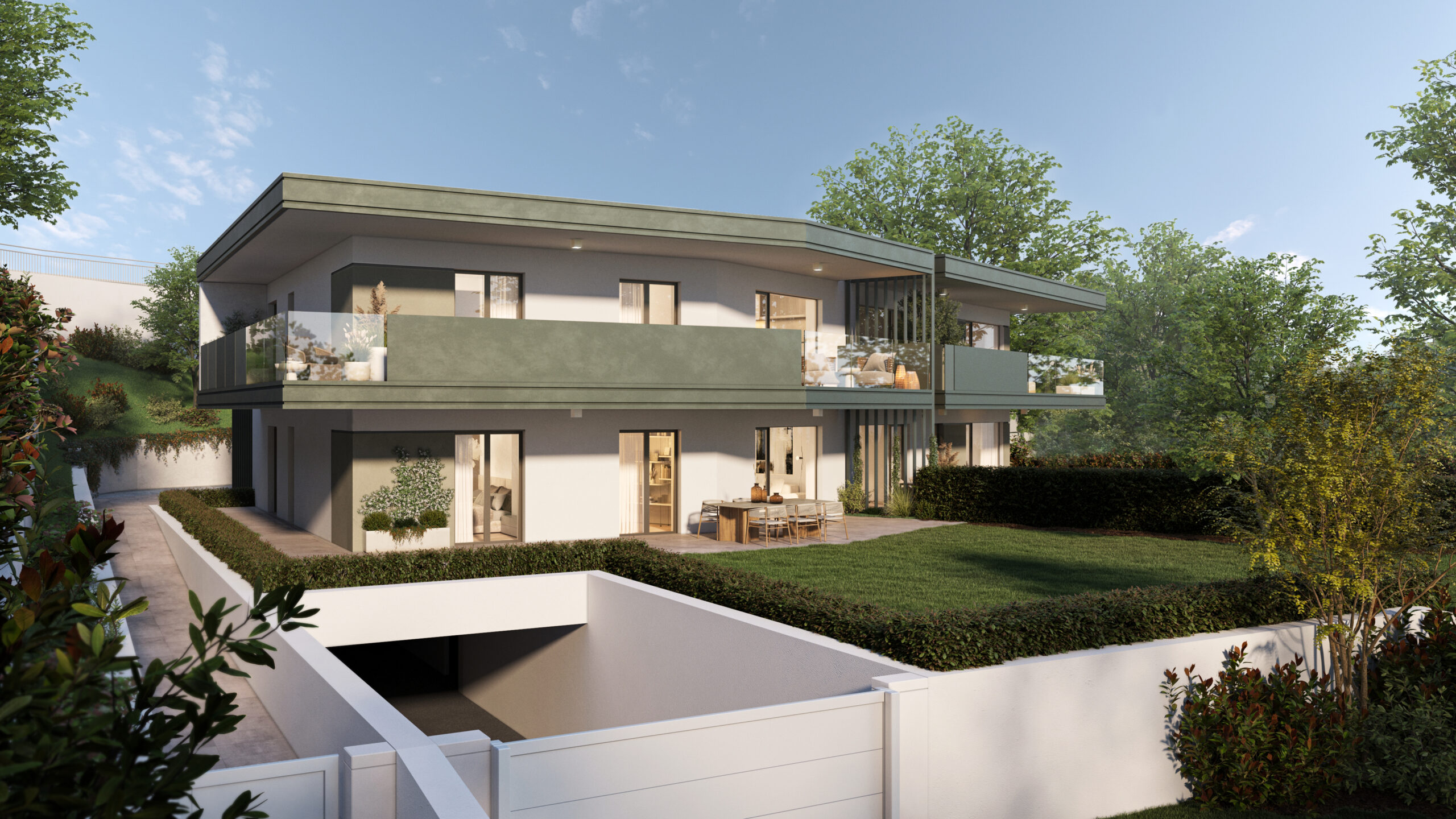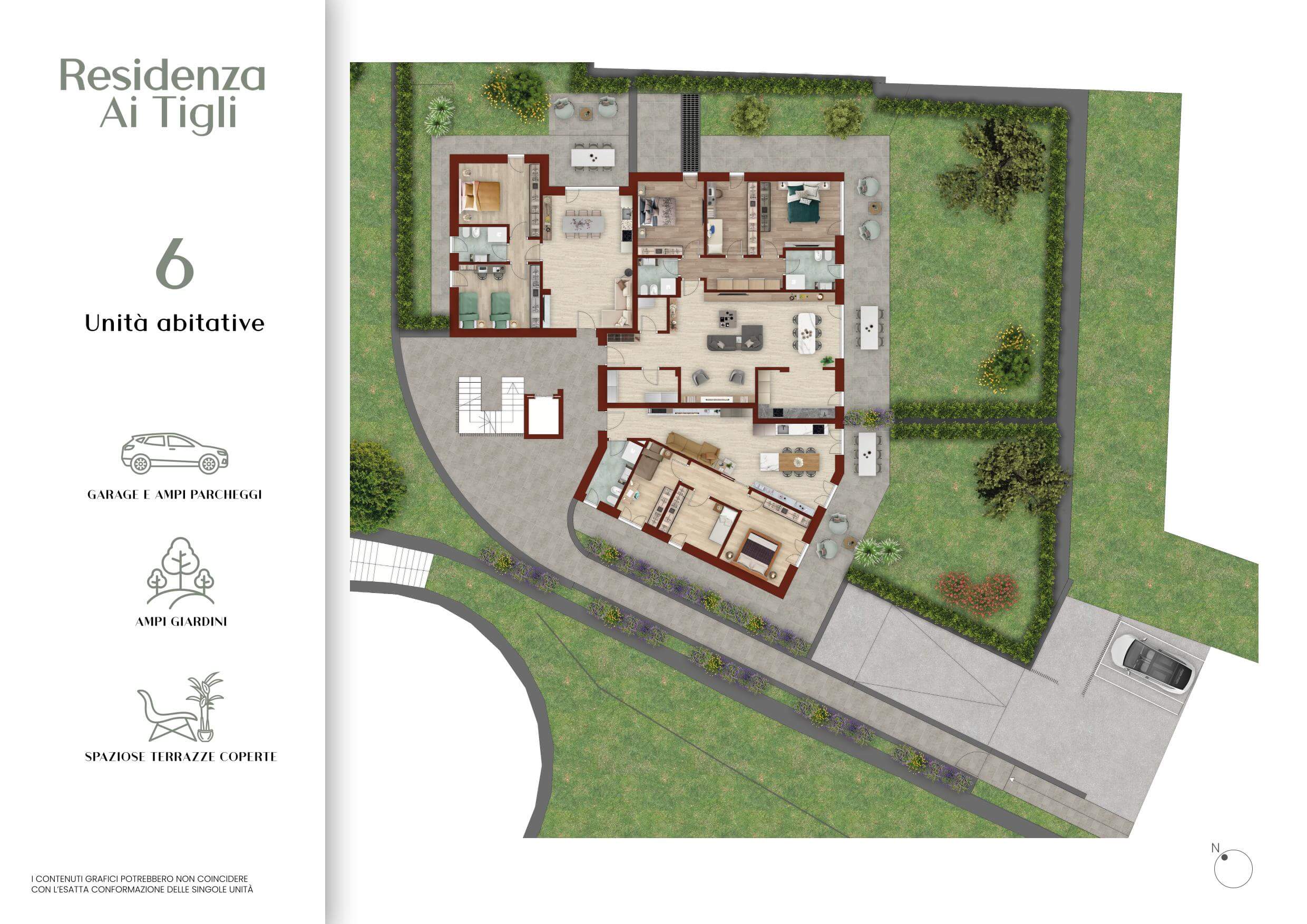 Il progetto prevede la realizzazione di 6 appartamenti studiati per soddisfare le esigenze di famiglie, coppie e chi cerca spazi ampi e funzionali. Gli ambienti sono stati progettati per garantire comfort e luminosità: la zona giorno si apre su giardini privati per le unità al piano terra o su terrazze per quelle al piano primo, mentre le camere da letto, ben organizzate e dotate di soluzioni per ripostigli, offrono un’ottima funzionalità quotidiana. Le finiture interne di pregio e i garage al piano interrato completano il quadro abitativo, offrendo un equilibrio perfetto tra estetica e praticità.