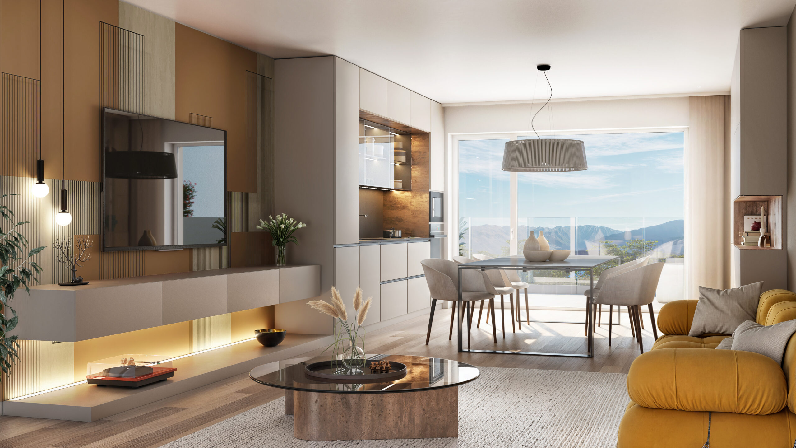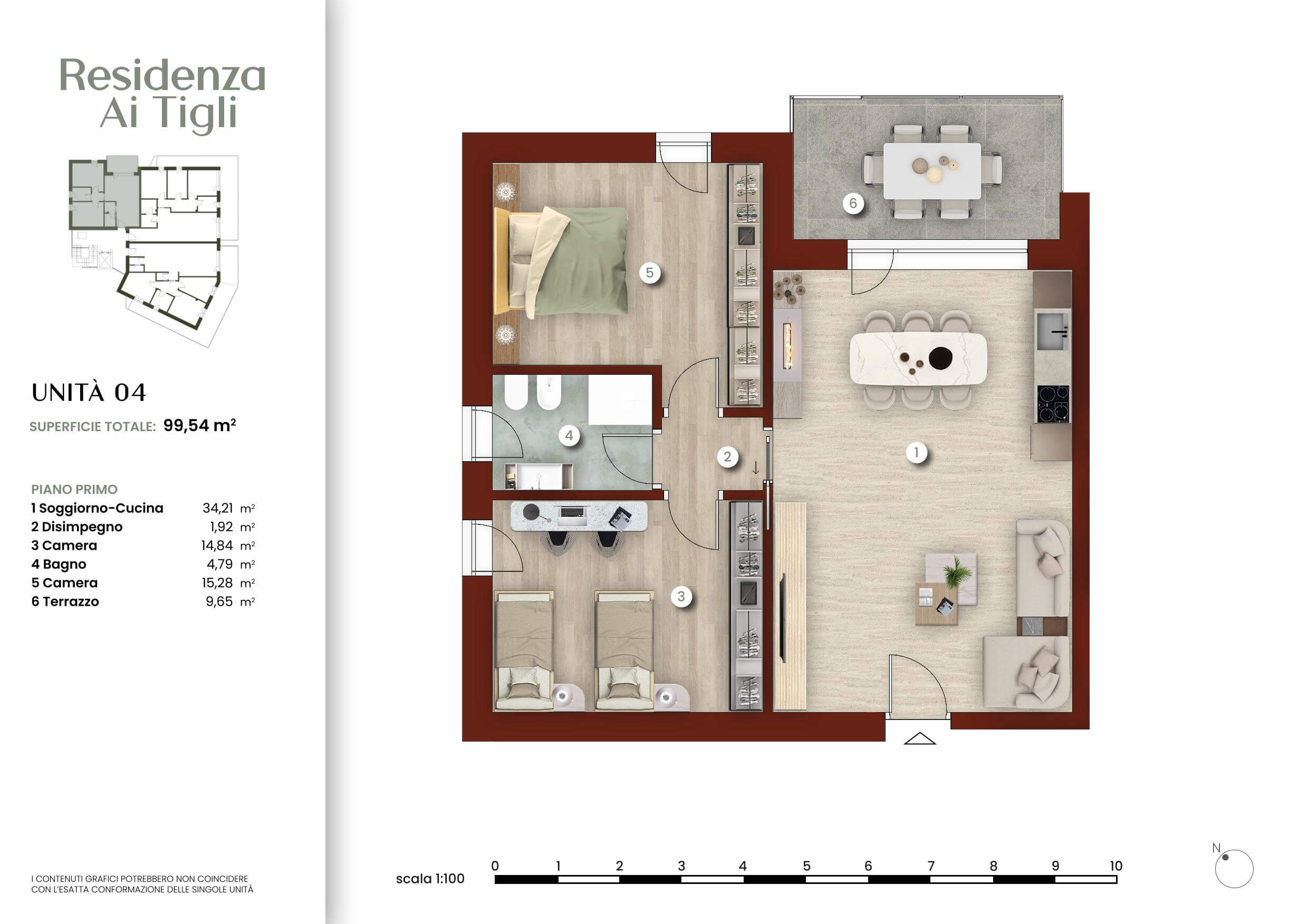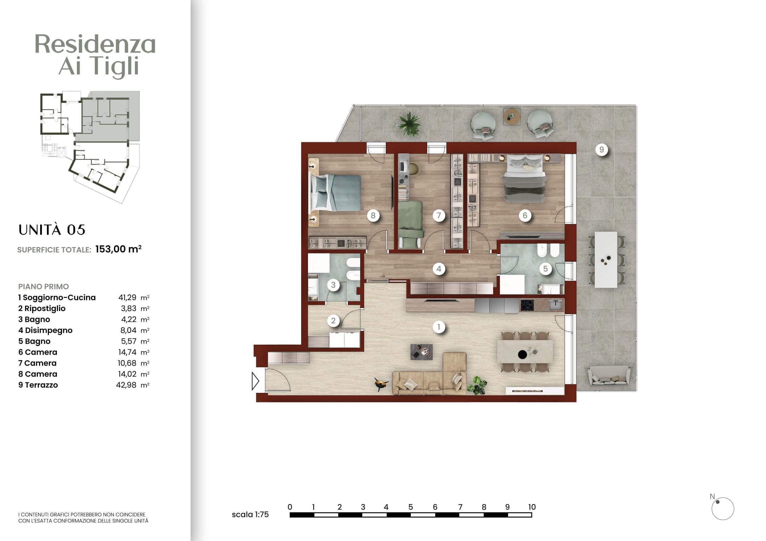 Ogni pagina combina immagini tratte dai nostri render fotorealistici con testi concisi che descrivono la posizione, le soluzioni abitative e le caratteristiche tecniche dell’intervento. Le planimetrie arredate offrono una visione chiara e funzionale degli spazi, facilitando la comprensione del layout e delle potenzialità di personalizzazione degli ambienti.