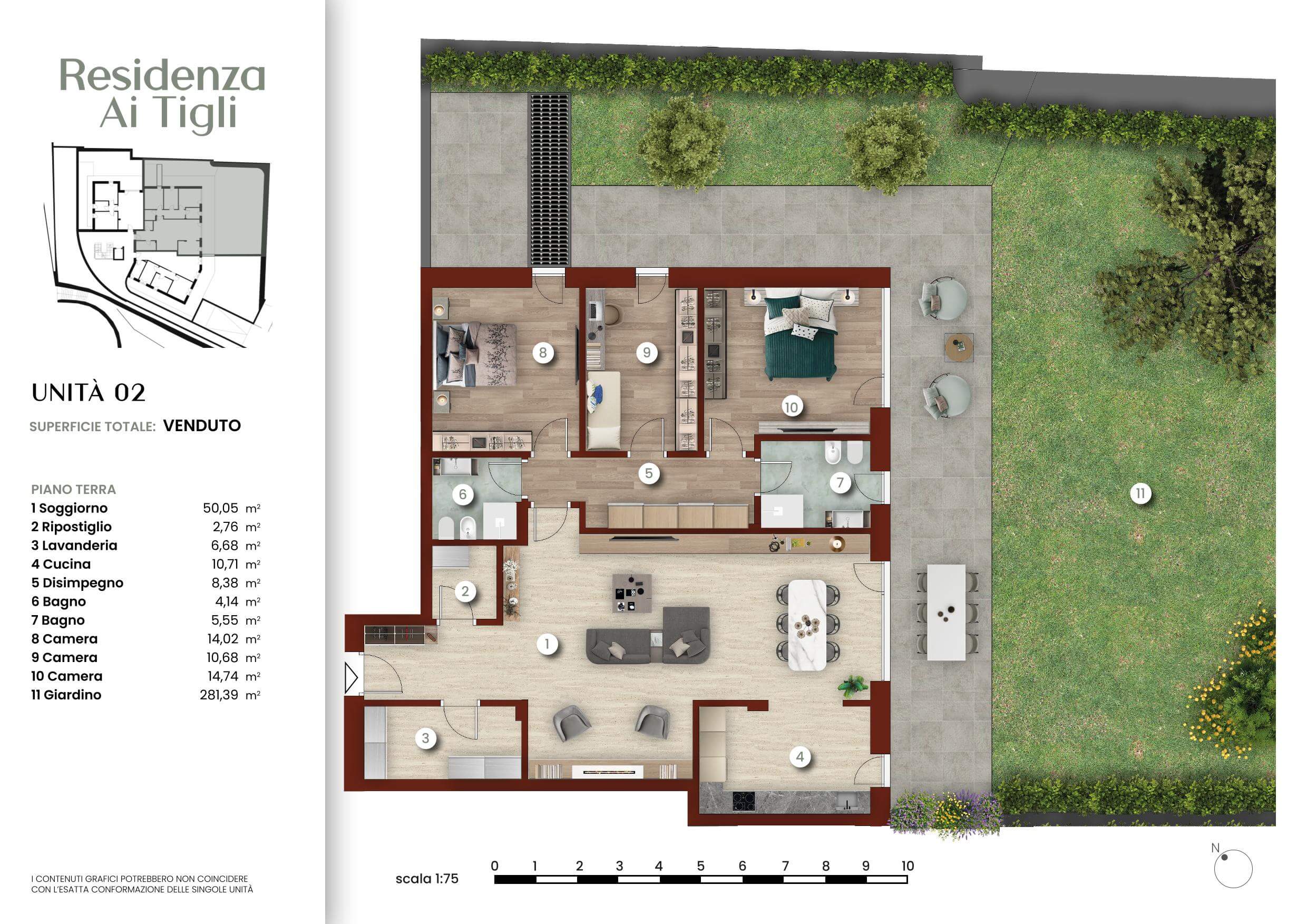 La sequenza dinamica evidenzia i dettagli architettonici, i layout degli interni ed esterni, e il contesto territoriale, permettendo agli spettatori di “vivere” l’esperienza abitativa di Residenza Ai Tigli.