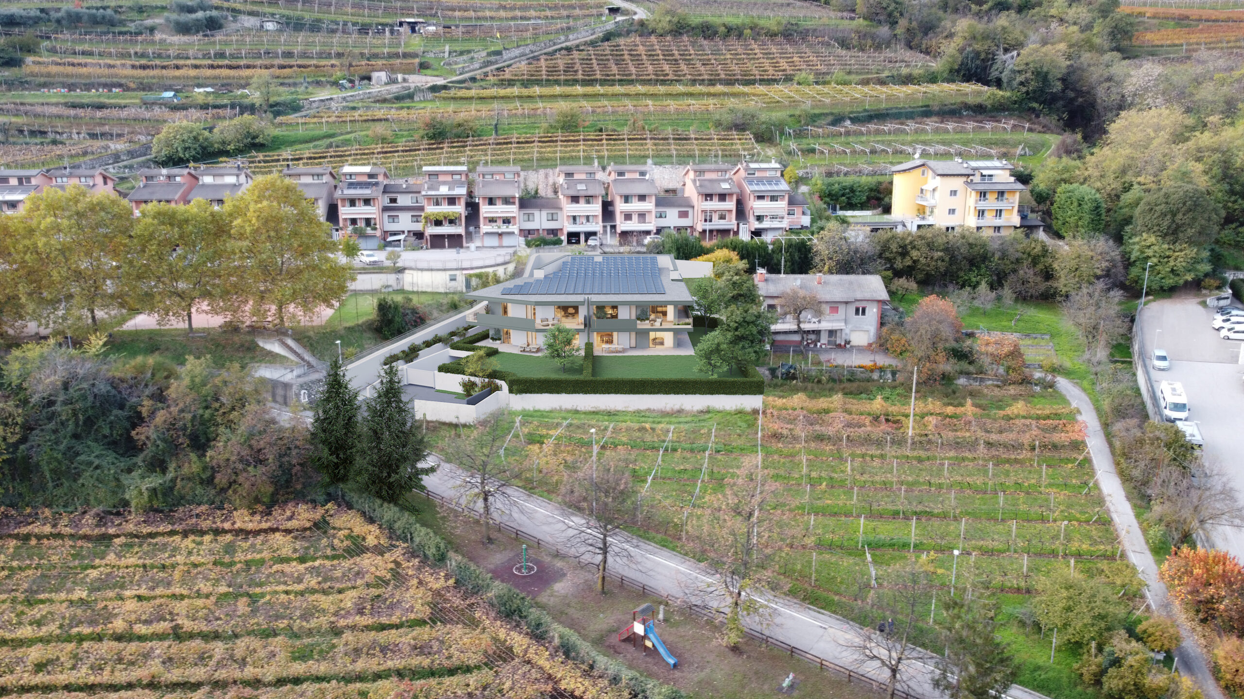 Residenza Ai Tigli è un intervento residenziale esclusivo situato lungo il Viale dei Tigli, nella tranquilla frazione di Marano a Isera, in Trentino-Alto Adige. Immersa nel verde e a pochi passi da Rovereto, la residenza coniuga il fascino di un borgo rurale con la comodità di avere servizi essenziali a portata di mano. L’ambientazione, caratterizzata da un patrimonio storico e naturale unico, regala agli abitanti un’esperienza abitativa in perfetta armonia con il territorio.