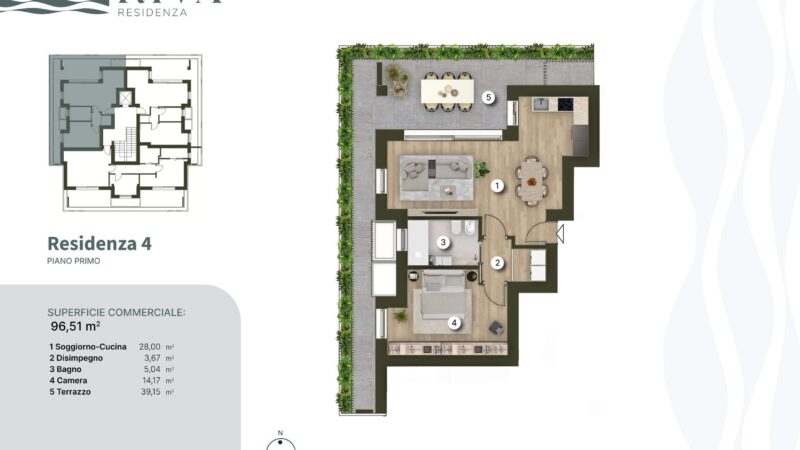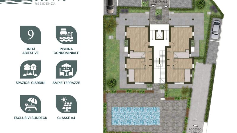 L’intervento darà vita a un edificio elegantemente progettato, con appartamenti di varie tipologie, piscina e ampie terrazze. Ogni dettaglio è studiato per offrire un abitare contemporaneo e consapevole, ponendo al centro il comfort della persona e il rispetto per l’ambiente.
